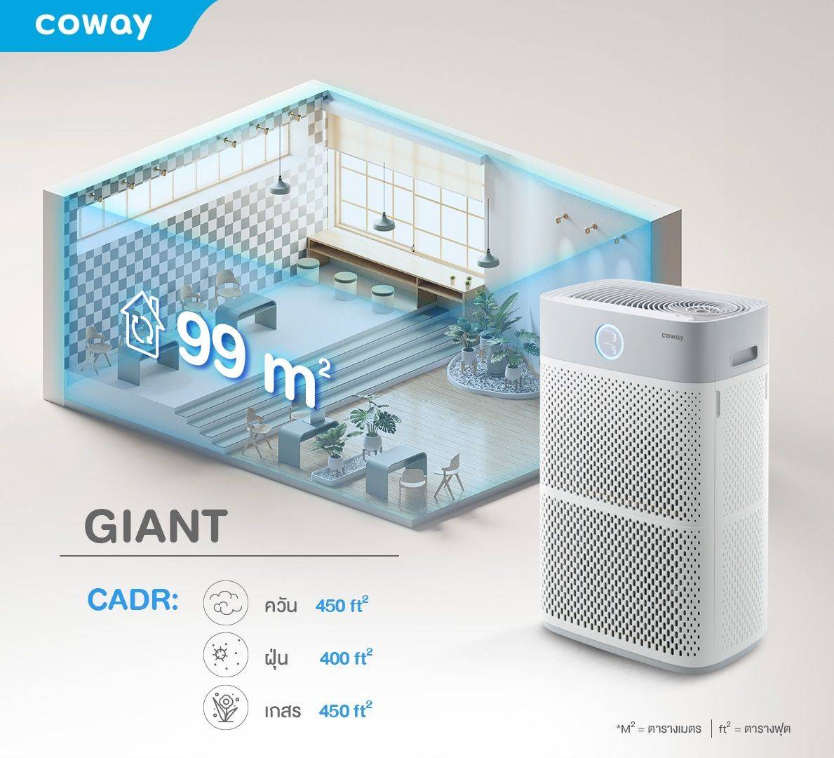 ครอลคลุมพื้นที่99ตารางเมตร ฟอกอากาศที่ทรงพลังการฟอกที่เพิ่มขึ้น 4 เท่า ครอบคลุมทุกพื้นที่ อากาศสะอาด อย่างหมดจด