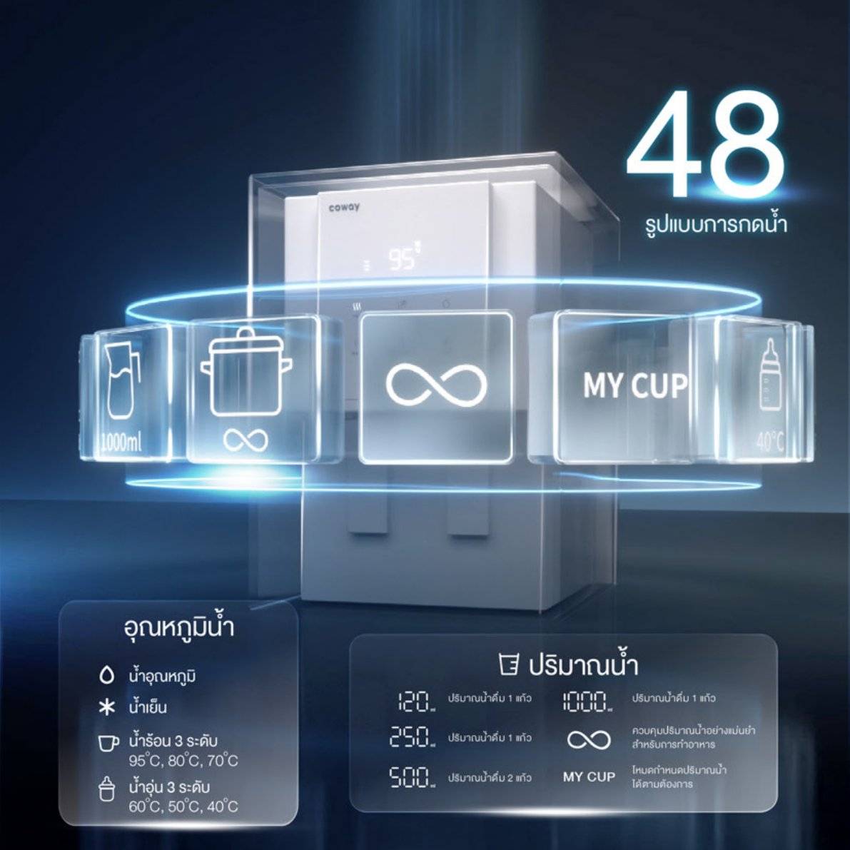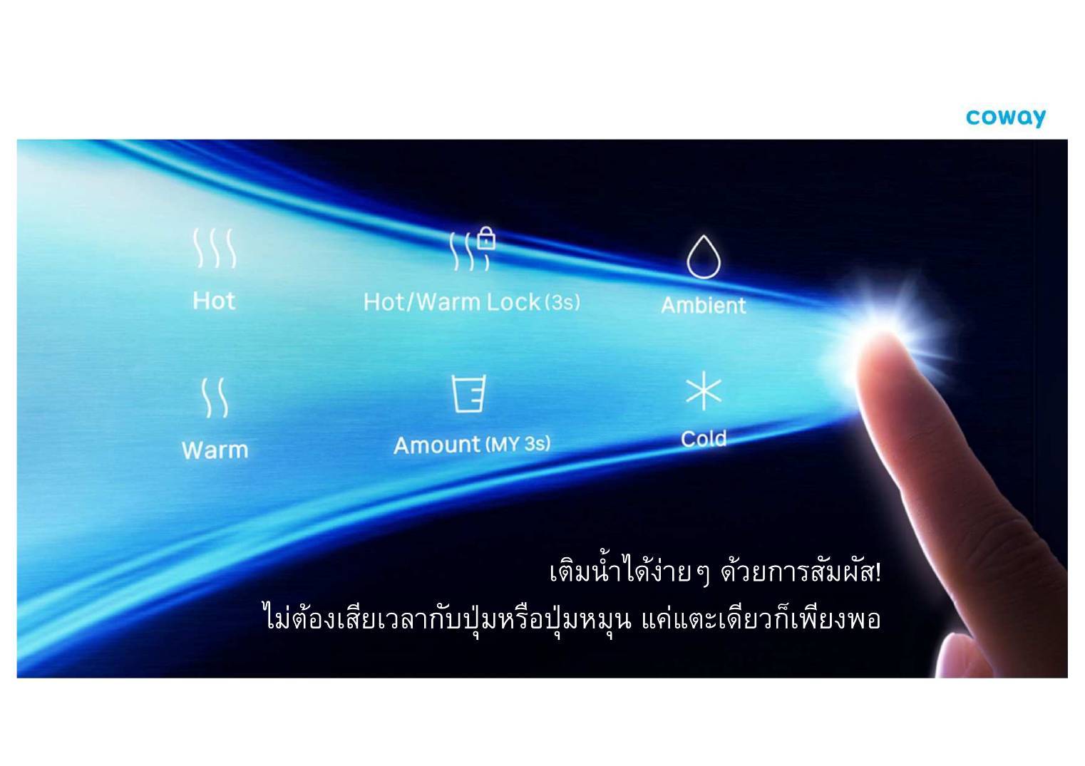 ให้ทุกการดื่มน้ำง่ายขึ้นเพียง แค่ปลายนิ้วสัมผัส ปรับการใช้งานได้ถึง8อุณหภูมิ จุน้ำได้มากขึ้นแต่ยังคงดีไซน์ทันสมัย 48 รูปแบบการกดน้ำ ฆ่าเชื้อด้วยแสง UV Sterilization